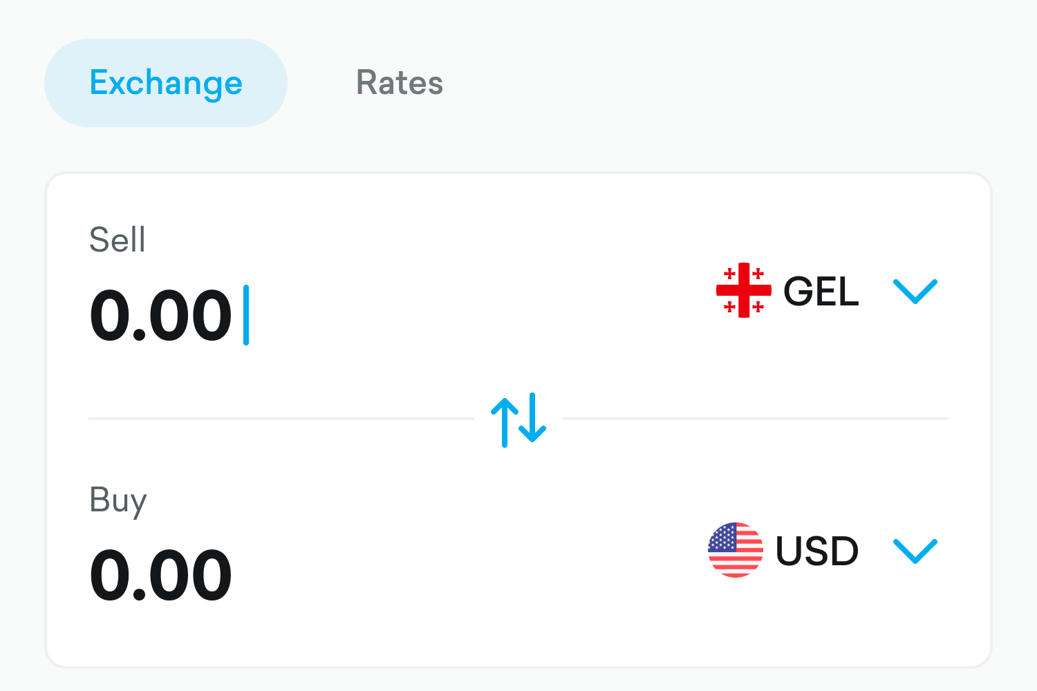 In Mobile Banking, enter the amount you want to convert into the other currency. If the amount exceeds 2,500 GEL (or the equivalent), you’ll automatically gain the option to request your preferred rate.